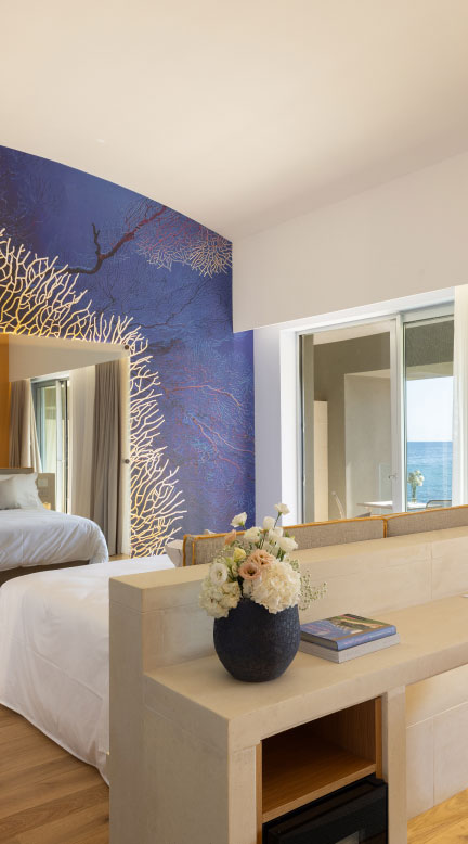 But the true highlight is the grand balcony that features a pristine, uninterrupted sea view—where the whispers of the waves and the kiss of the sea breeze animate the magnificence of the ocean. A secluded retreat where well-being and nature blend into an unparalleled experience.